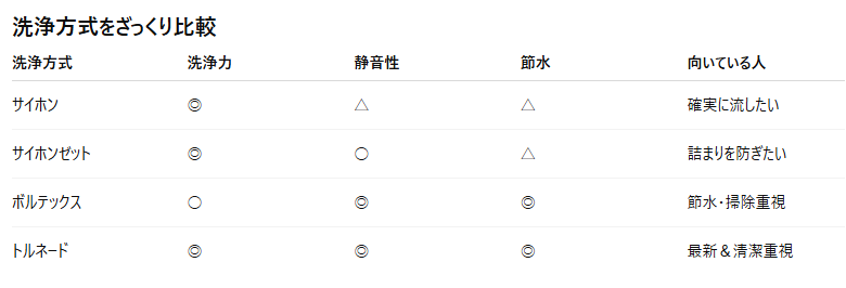「サイホン式」「ボルテックス式」「トルネード洗浄」
